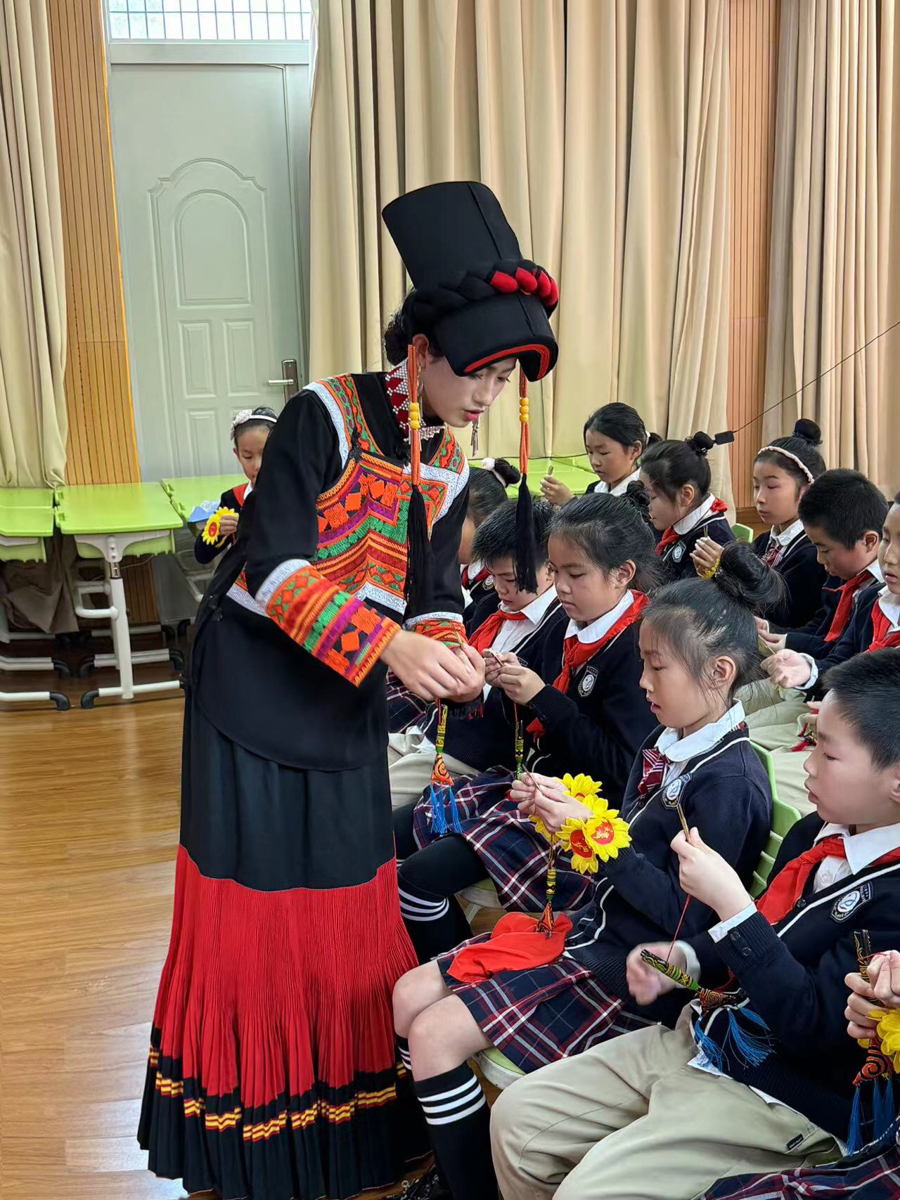 金枝课余时间去浦三路小学教孩子们演奏彝族乐器口弦