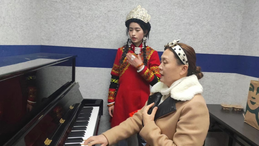 十二 继续奔跑进入音乐学院的金枝徜徉在艺术的殿堂中,跟随老师不断提升自己的专业水平,先后荣获“三好学生”称号,获得国家励志奖学金、人民奖学金支持。今年1月26日,她还参加了东方卫视“2025上海市各界人士春节团拜会”,代表上海音乐学院少数民族学生与著名歌唱家廖昌永一起演唱尾声歌曲《中华同心圆》。繁重的学习任务之余,她经常参加公益活动,兑现反哺社会的承诺。在得到福美公益发展中心的资助后,她成为其中一位志愿者,每周前往彭浦新村,带领社区阳光之家的“阳光宝宝”们开展活动。