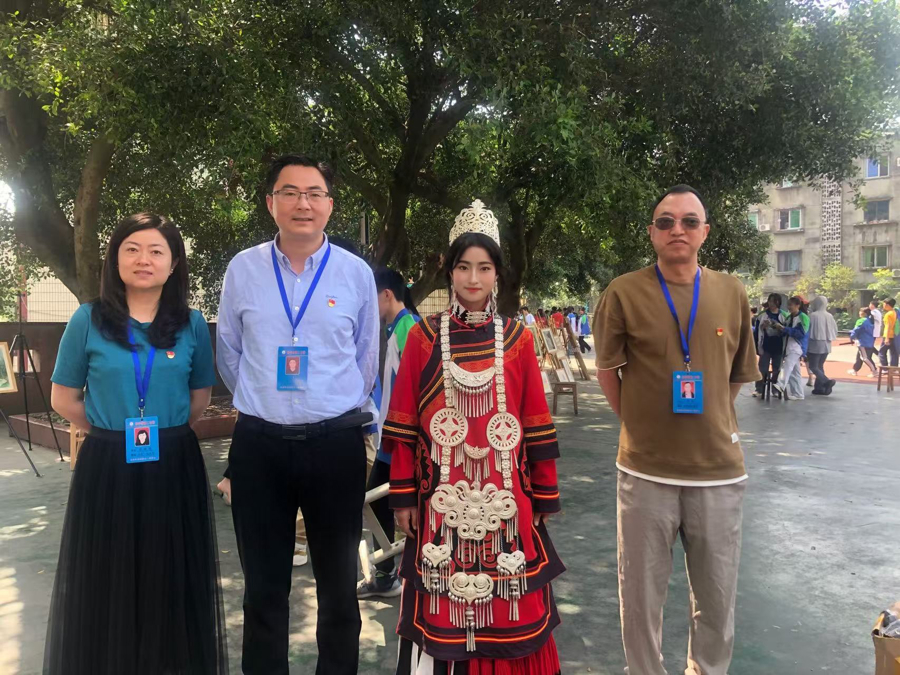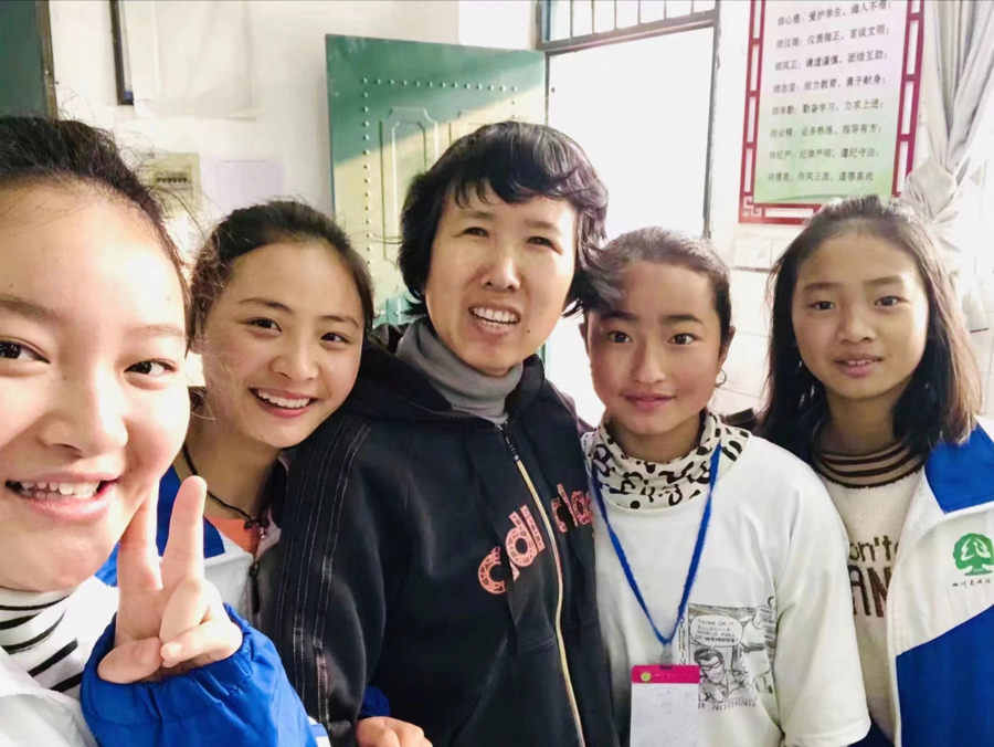 金枝与乐山二中的校领导和老师在一起。(左二为谢韬)
