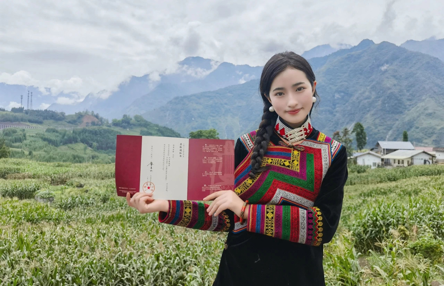 彝族女孩金枝美梦成真,收到了上海音乐学院的录取通知书