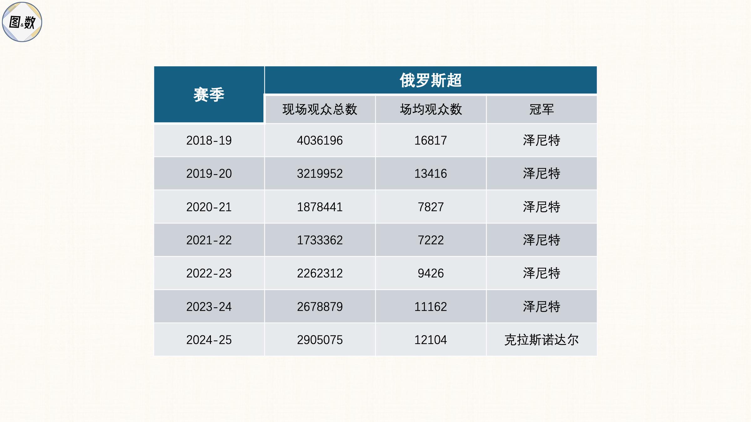 从2022-23赛季开始,俄超的现场观众人数开始反弹,随后两季连涨,刚刚结束的2024-25赛季是291万,预计其2025-26赛季或可突破300万,但需要注意的是,即使它能够获得同比10%的增长(291万+29.1万=320.1万),其现场观众总数仍然还达不到大流行之前的2018-19赛季的80%(403万*80%=322.4万)。