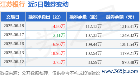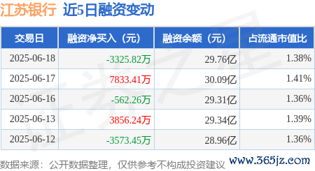 本站消息,6月18日,江苏银行(600919)融资买入1.01亿元,融资偿还1.34亿元大赢家,融资净卖出3325.82万元,融资余额29.76亿元。