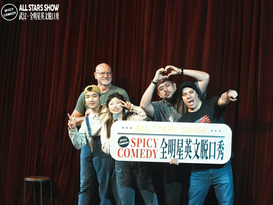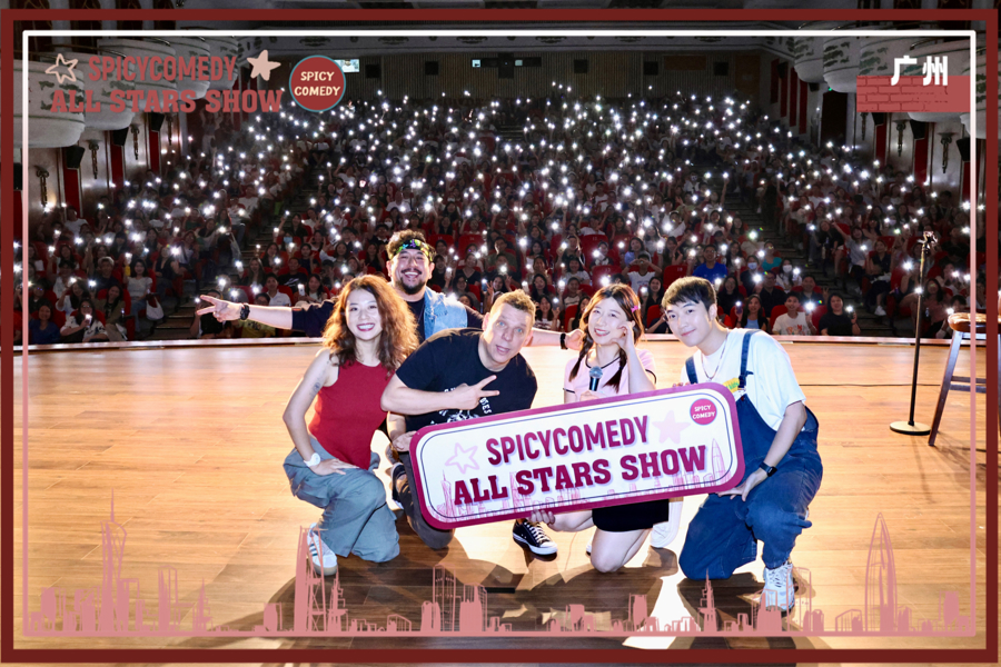 2016年,对脱口秀一无所知的Norah去香港看了一场当地的演出,台上全是外国演员,台下也大部分是外国观众。那天,一位外国演员讲了“中国人爱喝热水”的段子。演出结束后,他对Norah说:“我看出来你是唯一一个中国观众,希望你没有感到被冒犯。”趁着酒劲,Norah精彩地怼了回去,引发全场大笑,也让这位外国演员惊喜不已。这是她第一次与脱口秀有了交点,也是缘分的原点。回到上海后,她被推荐参加一家多语种俱乐部的开放麦活动。每天下班后,Norah的时间几乎都被脱口秀占据,最高峰时,一周去三场开放麦:“脱口秀最迷人的,就是它的即时感和不可掌控性,有点像在‘开盲盒’。”可惜好景不长,俱乐部老板回国了,Norah所在的英语脱口秀舞台轰然倒塌。“别人能做,我为什么不能做?”顶住各方压力,她以SpicyComedy的名义“试水”,做起了零散的商演,经过两三年积淀,每场门票都能早早售罄。2023年初,SpicyComedy正式诞生,Norah也成了一名全职演员。彼时,怀揣着做英语脱口秀梦想的她从未想过,作为上海为数不多的多语种脱口秀俱乐部,他们竟意外闯入了一片“蓝海”——随着普通话脱口秀越来越“卷”,原本为了填补演出空档开发的各类语种脱口秀能够吸引的观众各不相同,进一步细分了受众,拓宽了市场。