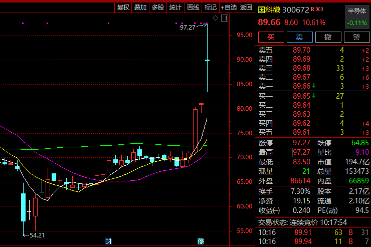 A股芯片设计公司国科微今日复牌,盘初一度涨超13%,截至发稿涨幅仍超10%。
